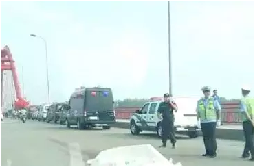 事情发生后,颍河派出所、巡警、交警、消防(119)等相关人员及时赶到现场,劝导男子,疏散观群众,疏导交通。