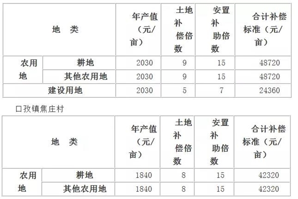 根据《安徽省人民政府关于调整安徽省征地补偿标准的通知》(皖政〔2015〕24号),该用地征收农转用初步按下表确定土地补偿费和安置补助费标准拟定《征收土地方案》上报审批。