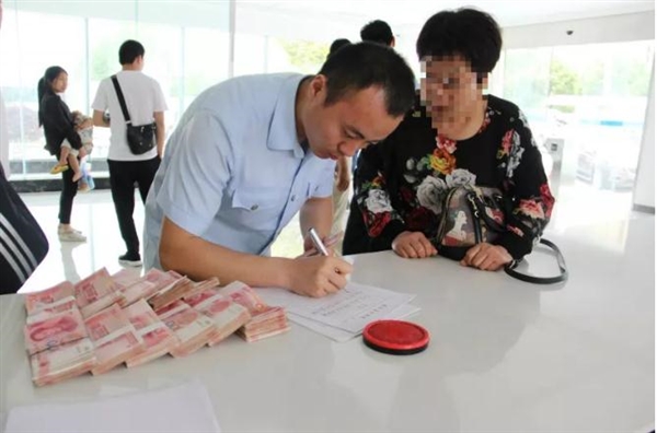 5月21日下午,廖女士带着115000元现金主动来到临泉法院执行局,在执行人员的见证下将现金交给韩某,又现场通过手机银行转账的方式将剩余10万元转给韩某,该案得以顺利执结。