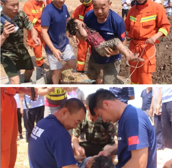 所幸阜阳蓝天救援队带来了自制的救援神器——竖井救援提升器,在大家的配合下,众人使用竖井救援提升器很快套住了女孩。