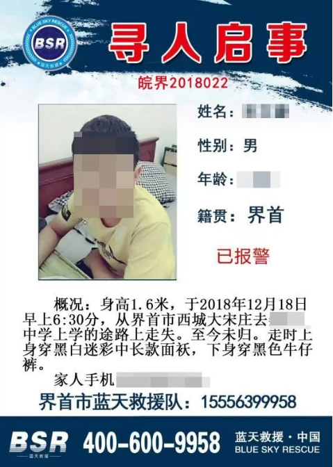 前几天很多界首人的微信朋友圈里都在转发一条寻人信息一时间引起广泛关注到底发生了何事呢?这孩子现在情况究竟如何了?事情经过12月18日晚23时许,界首市新华派出所接到辖区居民报警,其14岁的儿子失联了。
