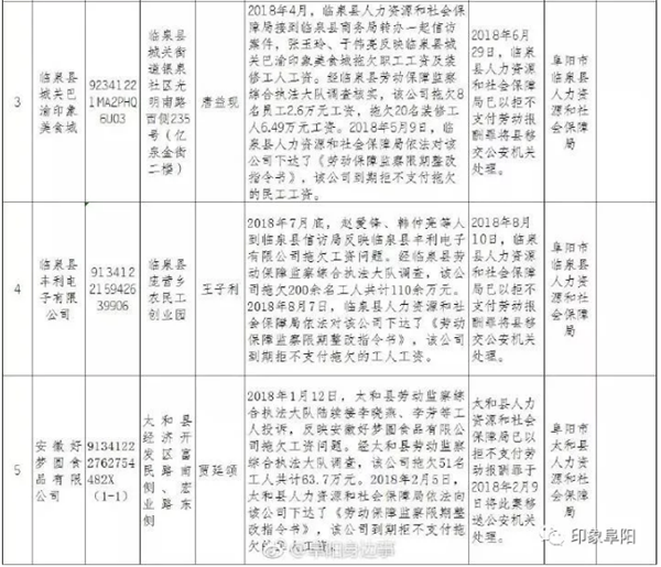 11月28日阜阳市人社局公布了近期重大劳动保障违法行为企业名单5家企业因到期拒不支付拖欠的民工工资被曝光被各界广泛关注的安徽好梦圆食品有限公司名列其中另据阜阳市劳动保障监察执法支队队长徐锐介绍,接下来